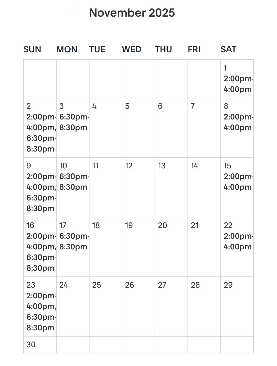 For November I’m going to host 2 sessions on Sundays and pause Thursday evening sessions.